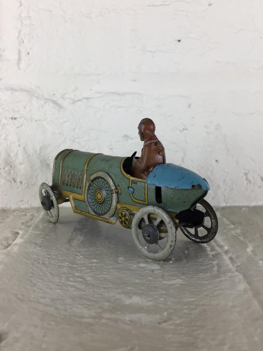 This Rare Meier Lithographed Torpedo Penny Car is made of Tin and in Germany. Lithograph is in good condition