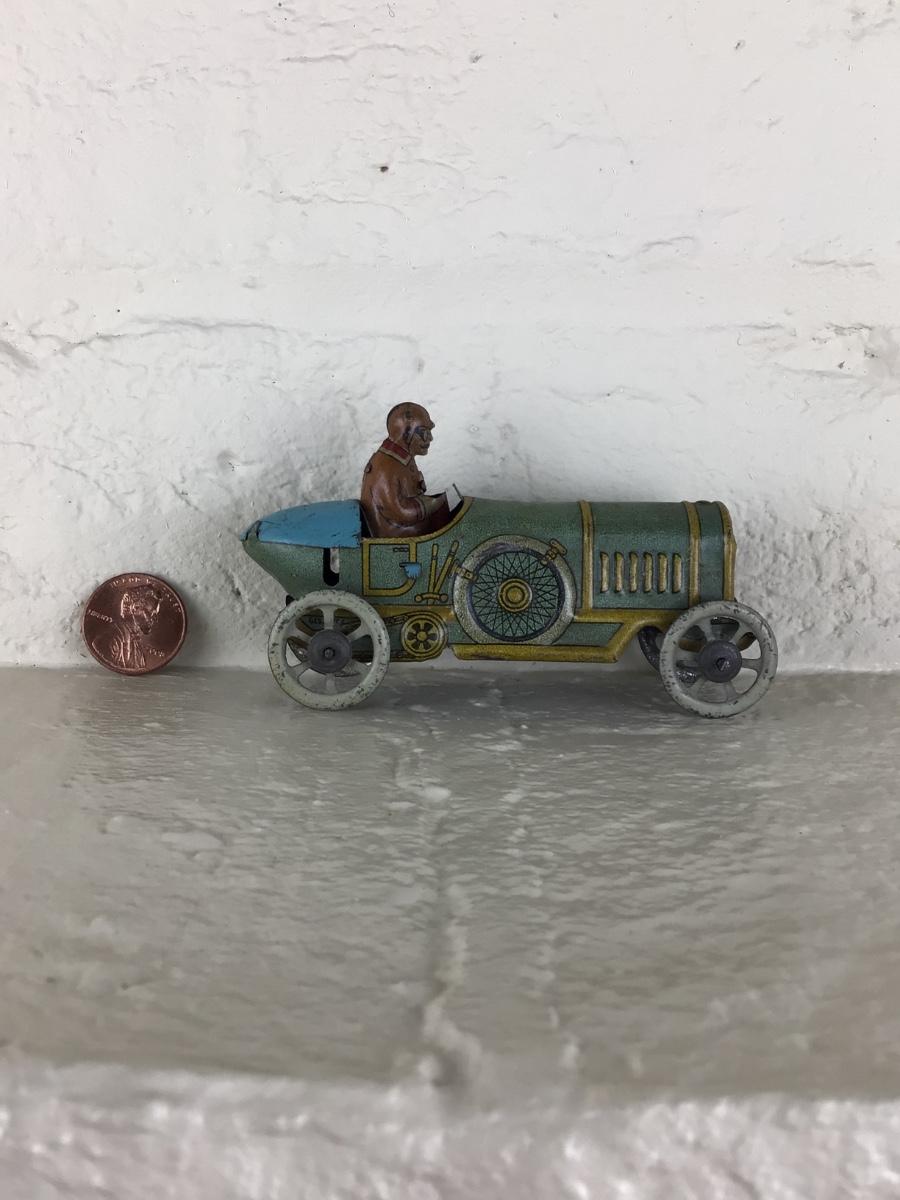 B1093 Rare Antique Victorian Meier Lithographed Torpedo tail Racing Car Penny Toy