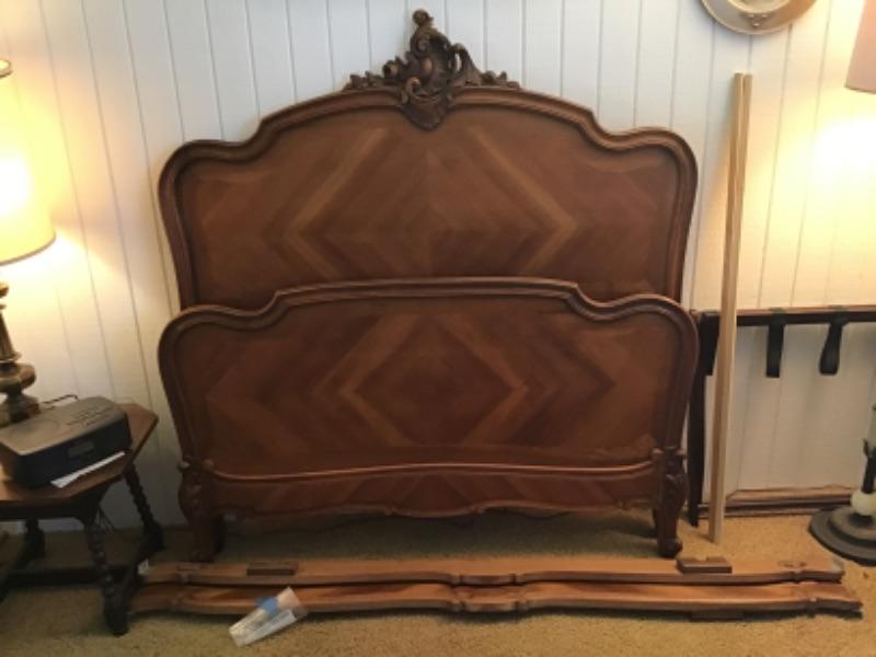 Antique full-size bed, headboard, footboard and rails