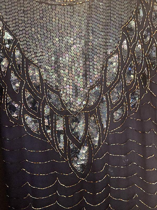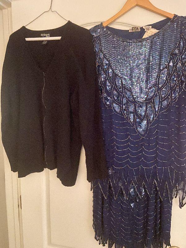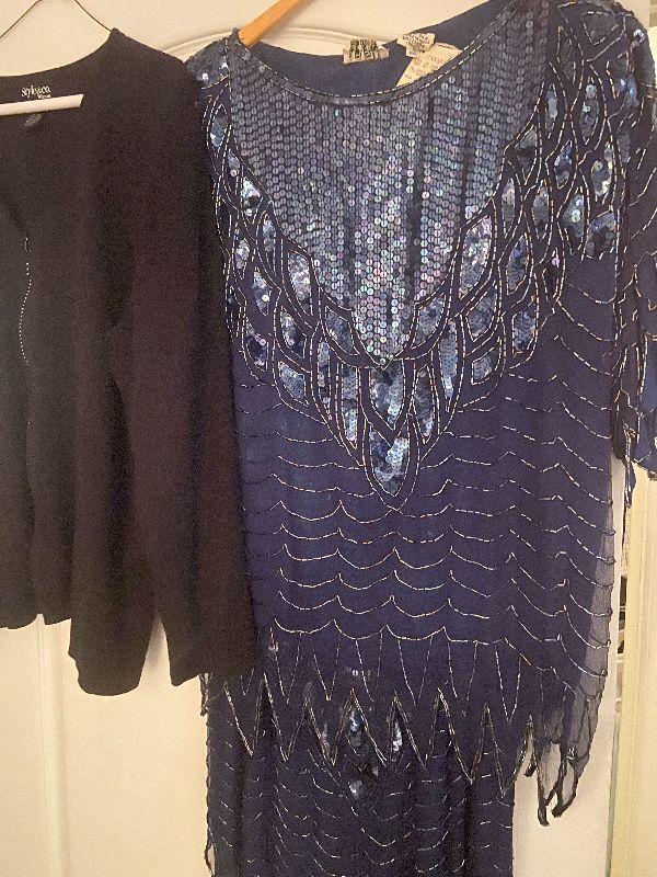 Beautiful blue beaded dress and fancy black rhinstone embelished sweater