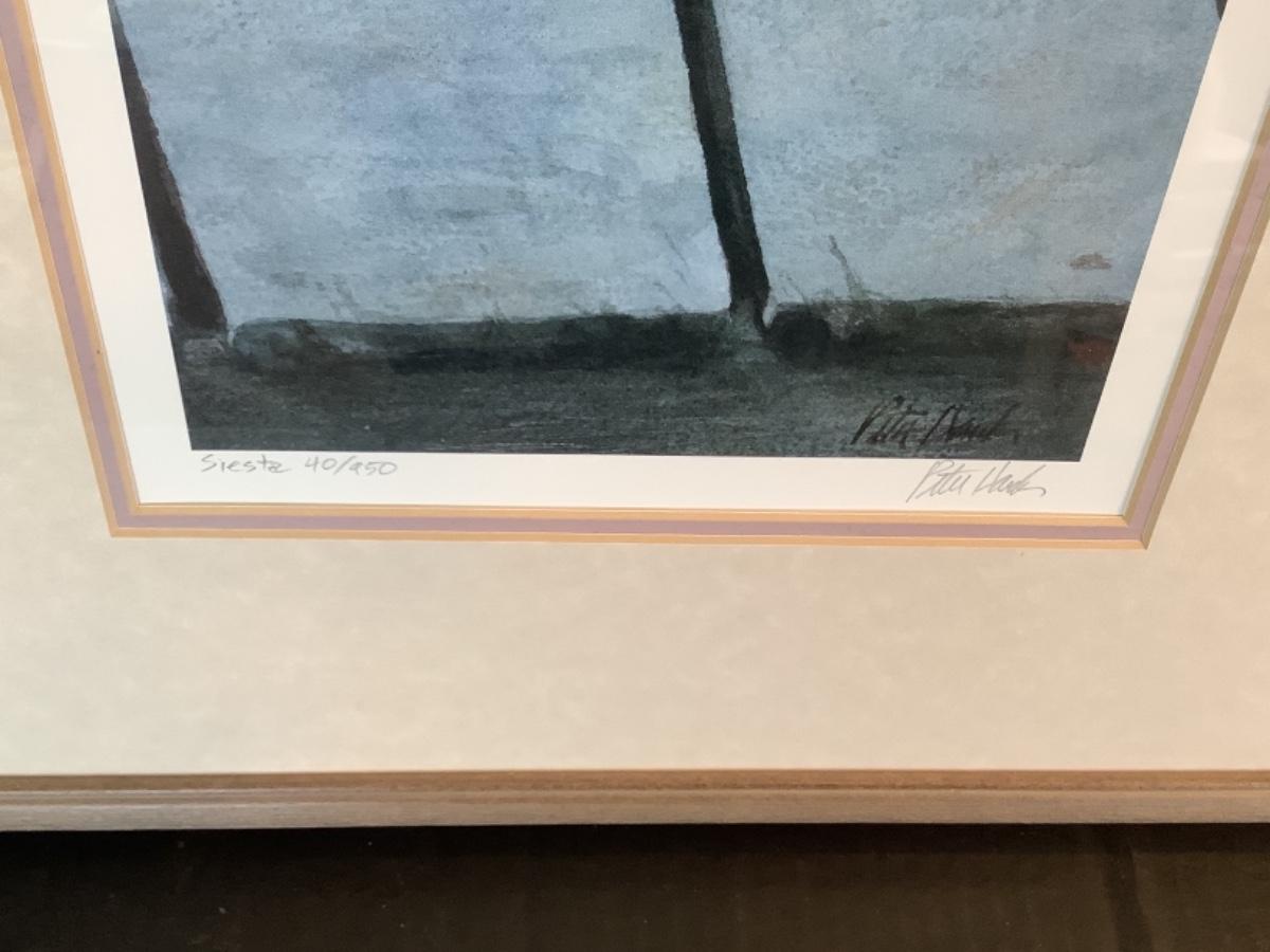 Peter Hanks signed, framed, print “Siesta” 40/950, measures 15-1/2” x 17-1/2”
