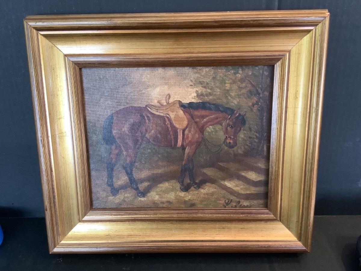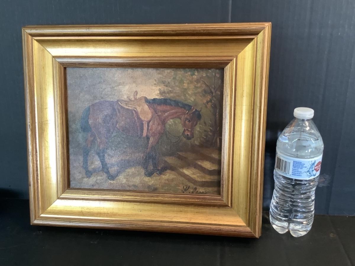 Signed framed Horse painting on canvas, see photos for artist signature, frame measures 15” x 13”