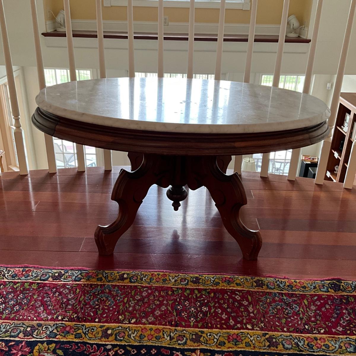 B1151 Antique Victorian Walnut Oval Marble top Coffee Table