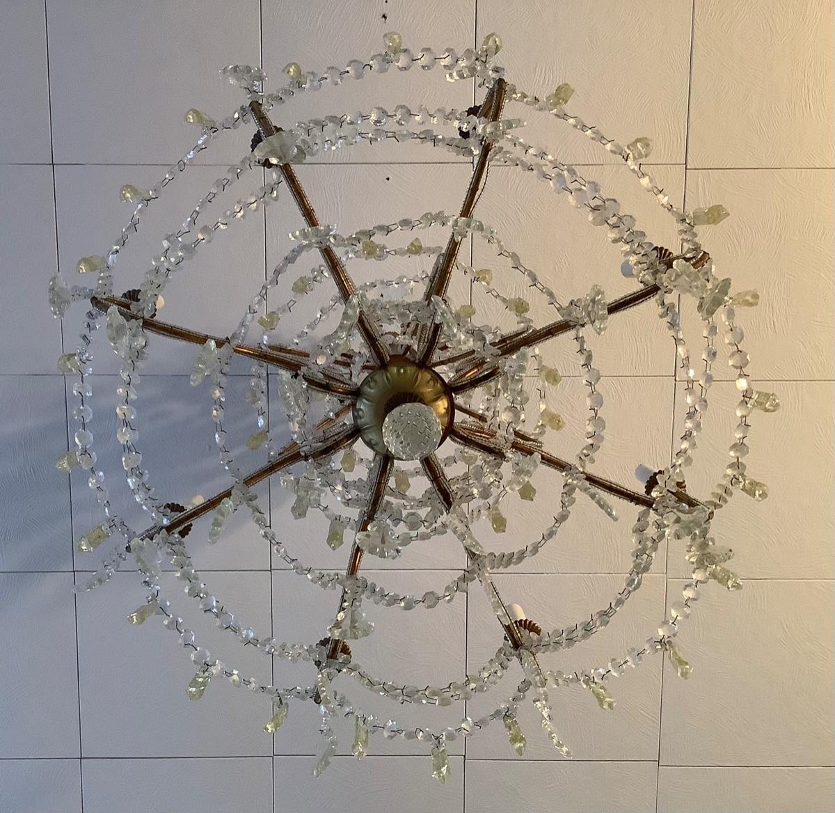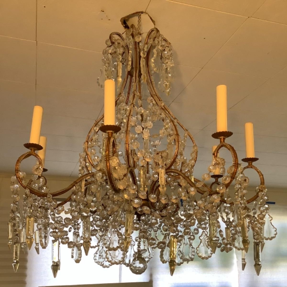 Electric Chandelier with crystal prisms and 8 arms, measures 24” wide and 30-1/2” tall
