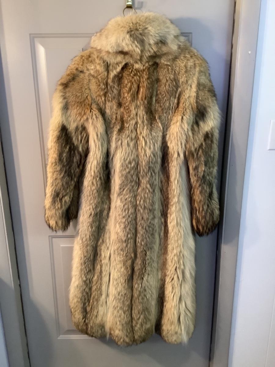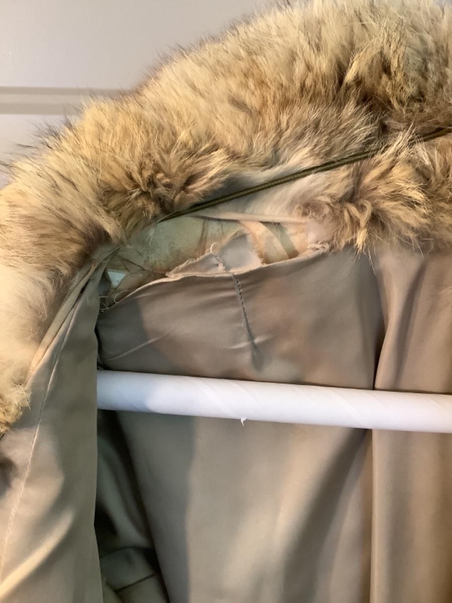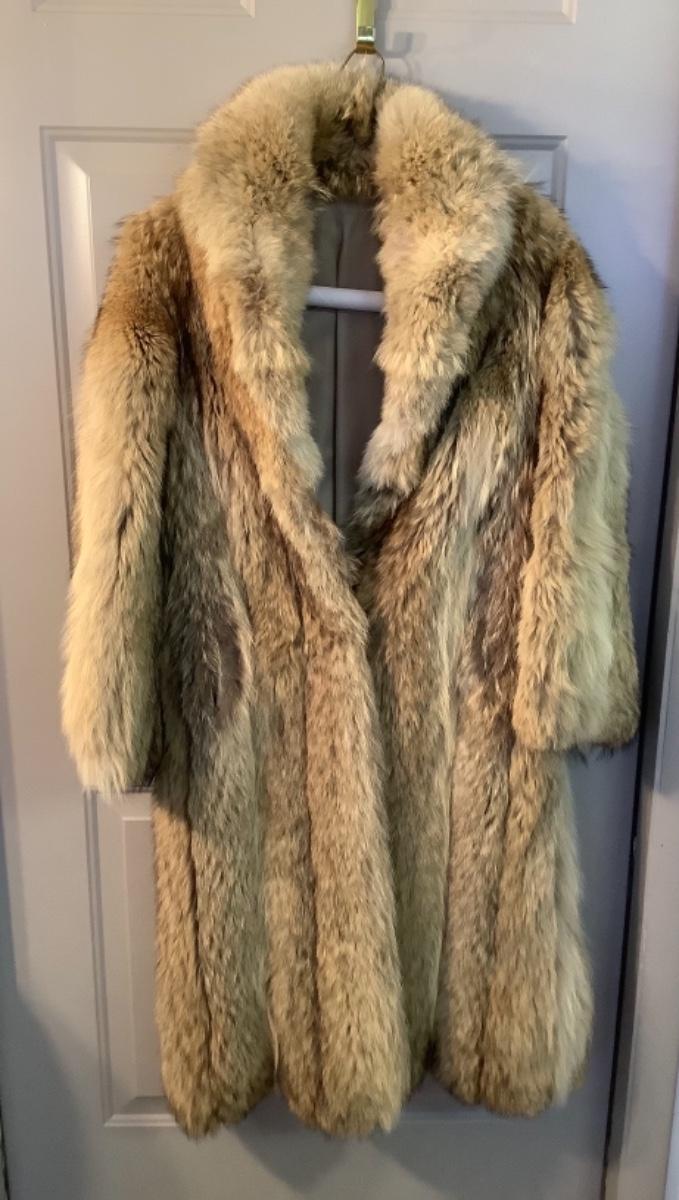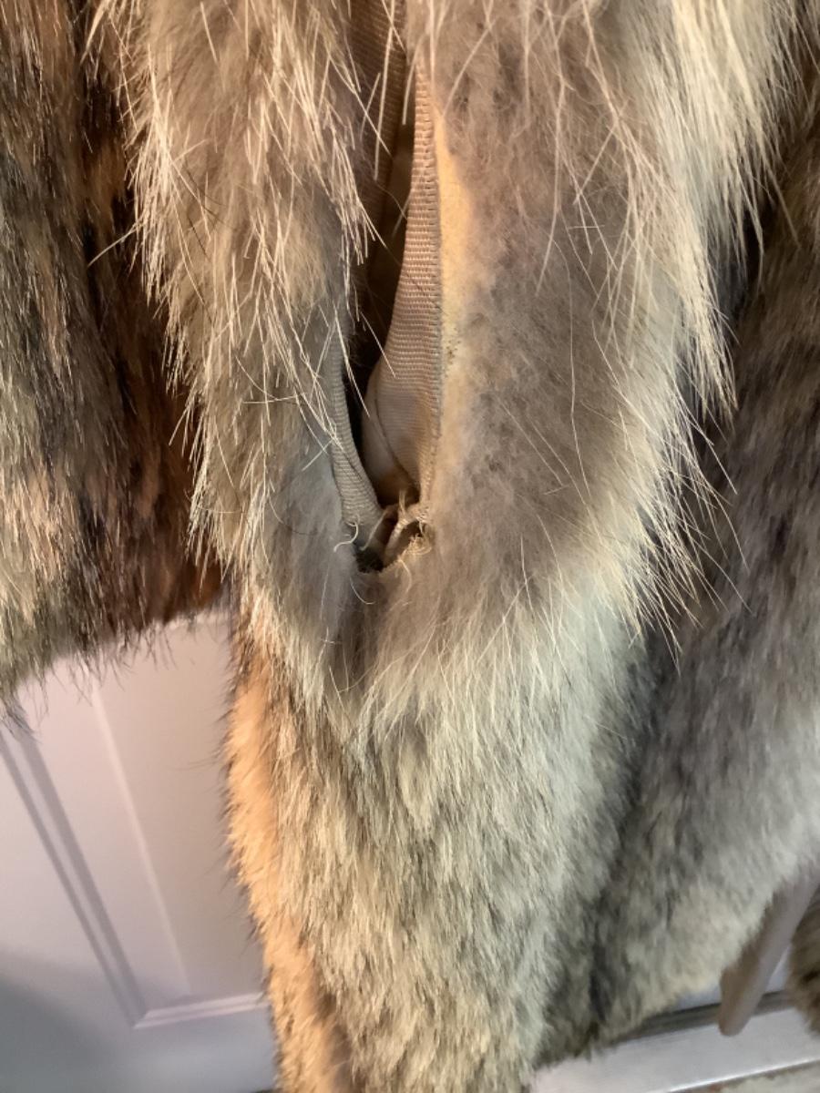 Antique raccoon fur coat, measurements are as follows- Bust 20”, Shoulders 22”, Sleeve (under arm to wrist) 19”, Shoulder to hem length 47”, Has a tear in the lining near neck area and small tear in the lining on right pocket