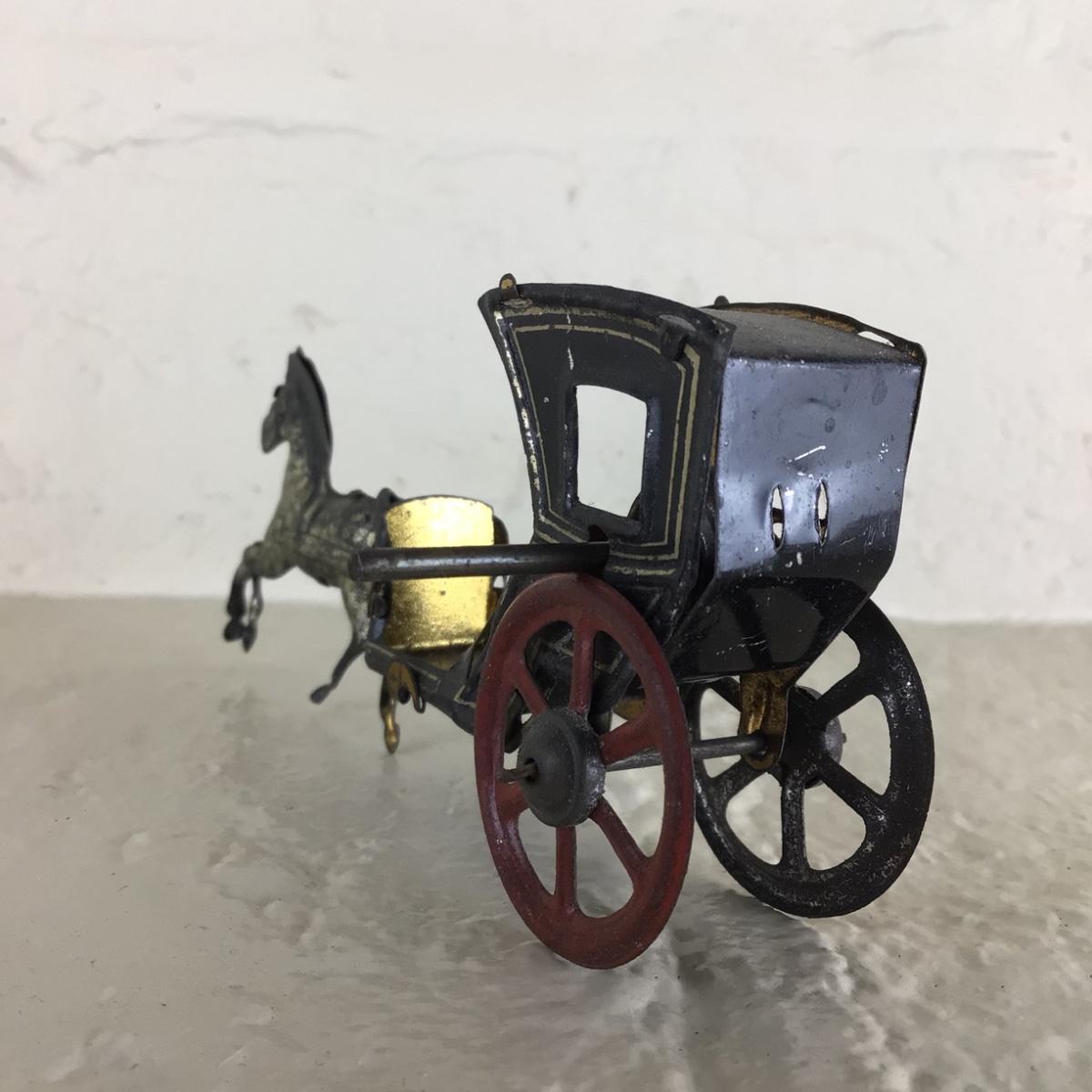 B1180 Rare Meier Horse Drawn Black Cab Taxi Lithograph Tin German Penny Toy