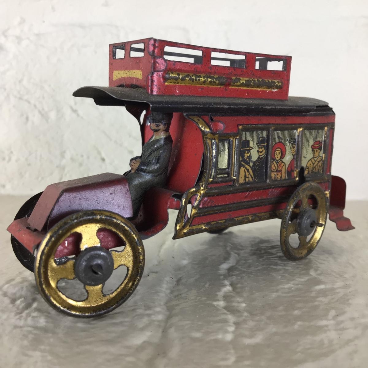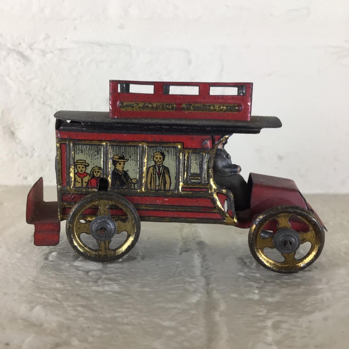 B1182 Rare Meier Red Bus Lithographed German Tin Penny Toy