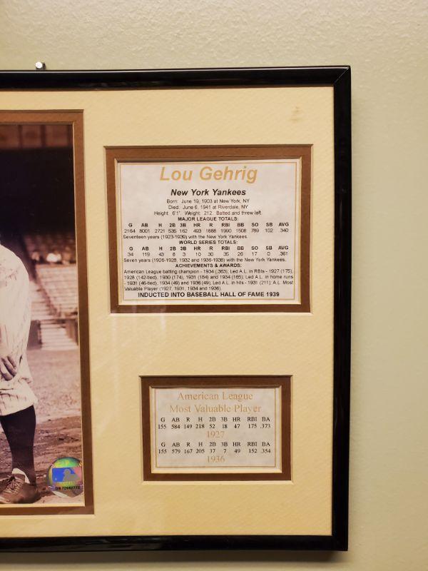 B126: Lou Gehrig Plaque MLB holo. Wall Décor