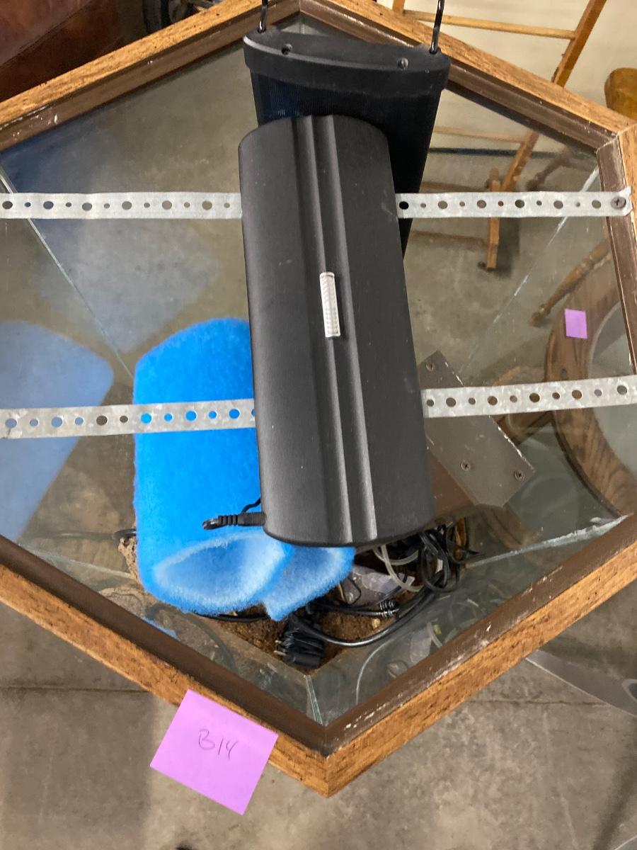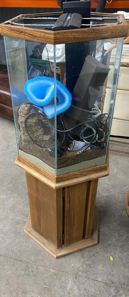 B14 aquarium with accessories, comes apart in 2 pieces H 49 1/2”, W 18”