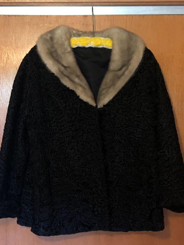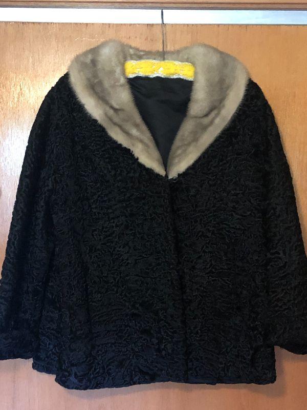 Excellent condition, vintage womens black coat. Fur collar. Side pockets. Size M/L.