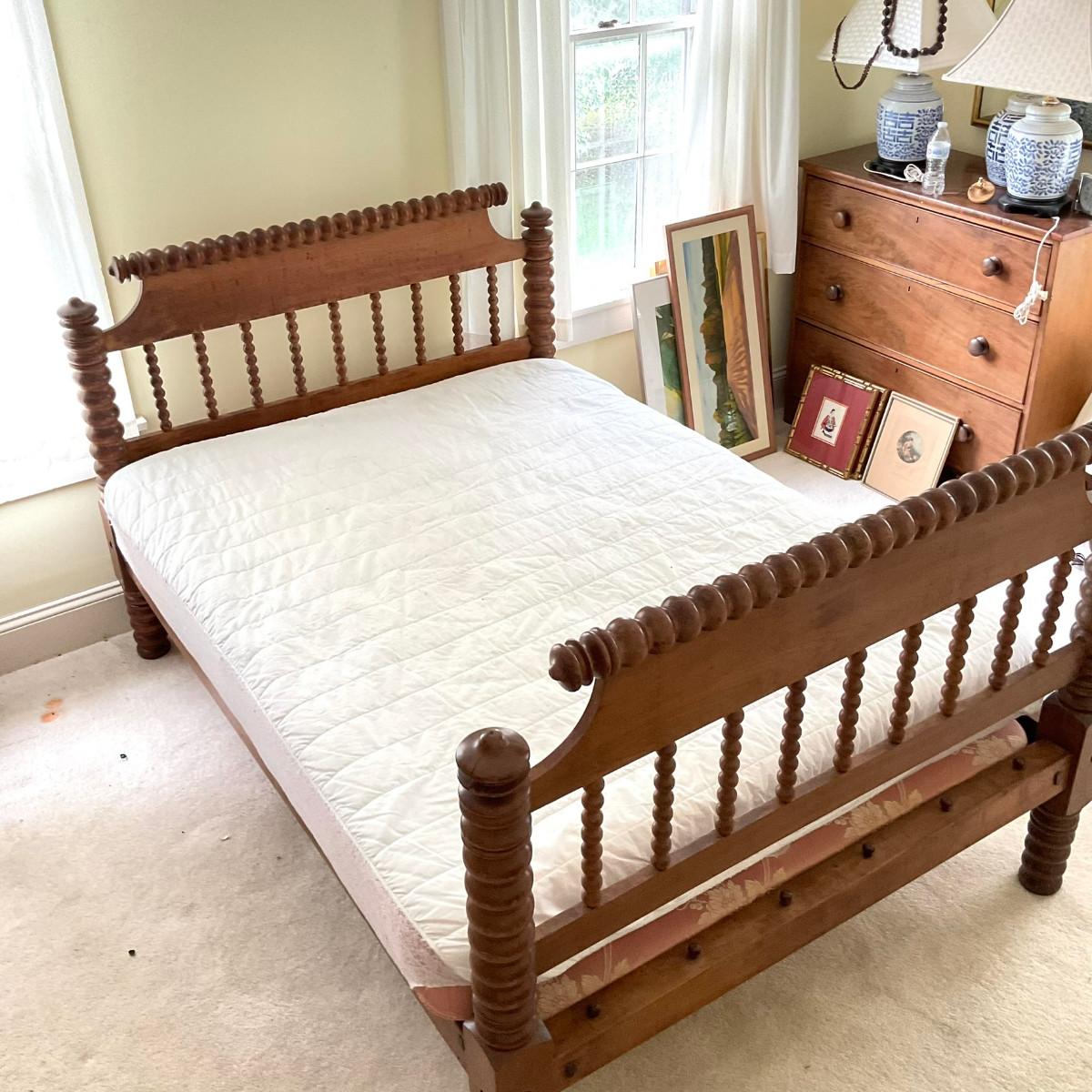 B184 Antique Full Size Vintage Spindle Rope Bed