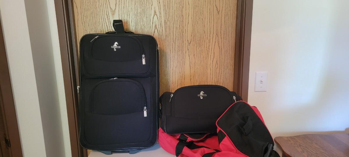 Atlantis roller luggage plus duffle tyle. Red black roller duffle.