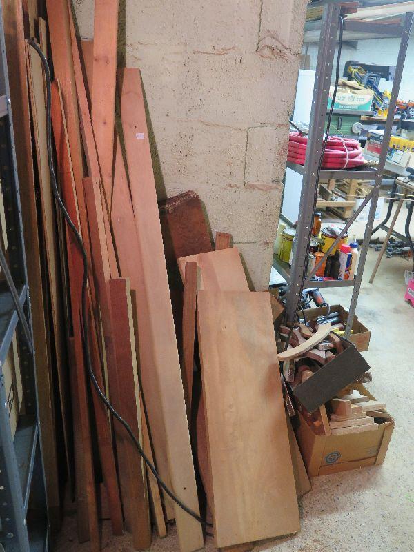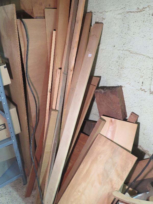 Great selection of wood for the woodworkers. Bring help to move. Located in basement that has narrow, steep, cement steps, and a sharp turn to right at bottom.