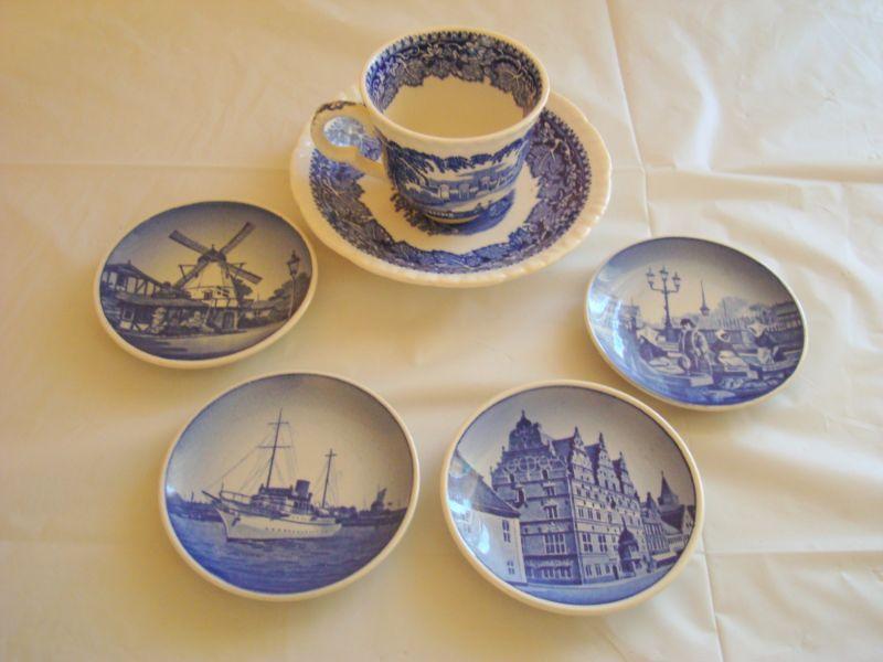 B2 106 - 6 Pc. Blue & White Porcelain Set - 1 Cup & 5 Saucers