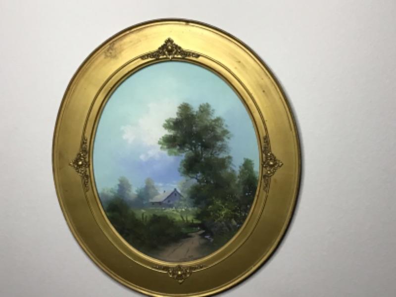 B2-106 Arts and crafts pastel painting signed but unable to read