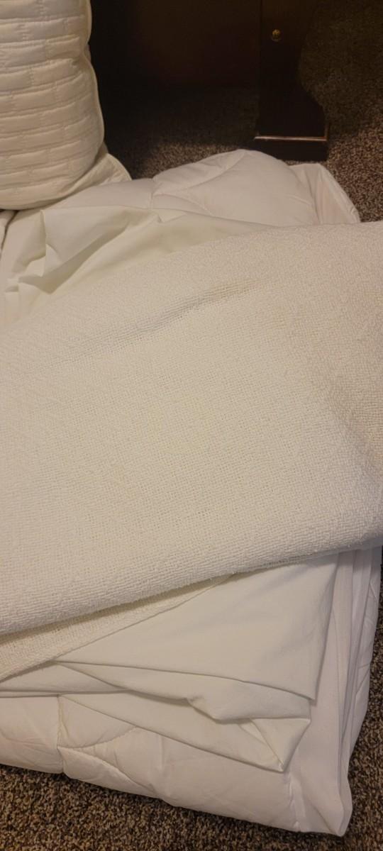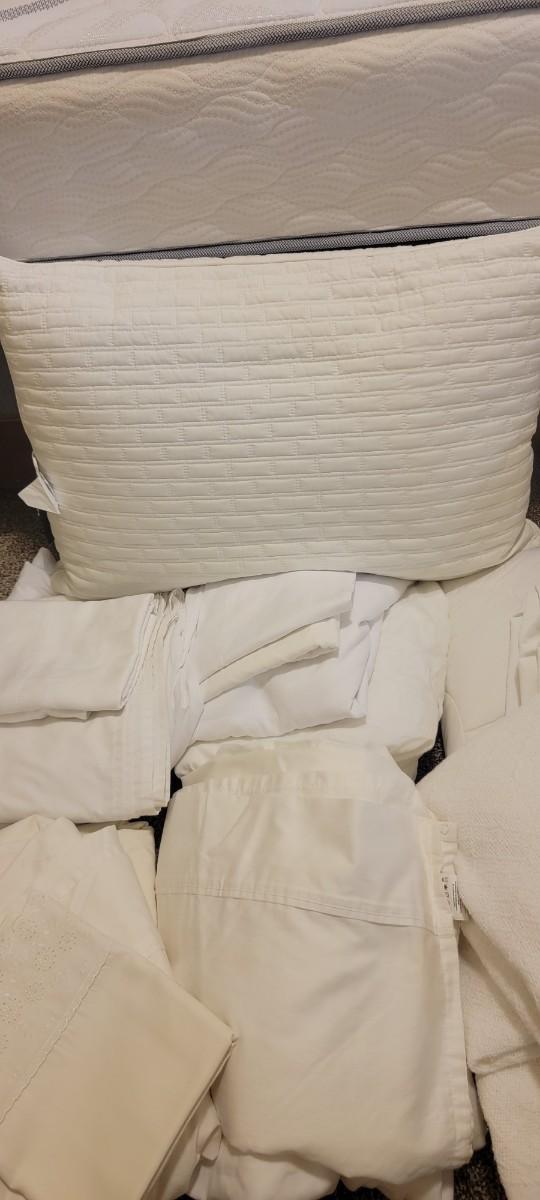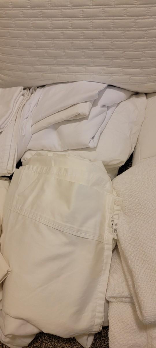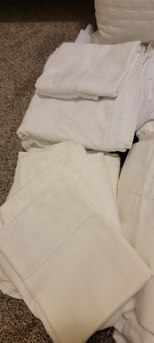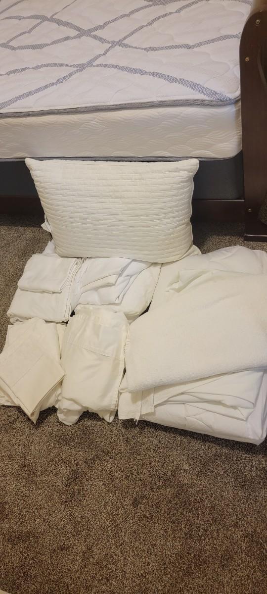 Miscellaneous bedding, sheets, mattress pad, blanket and pillow..some full sized. Bla