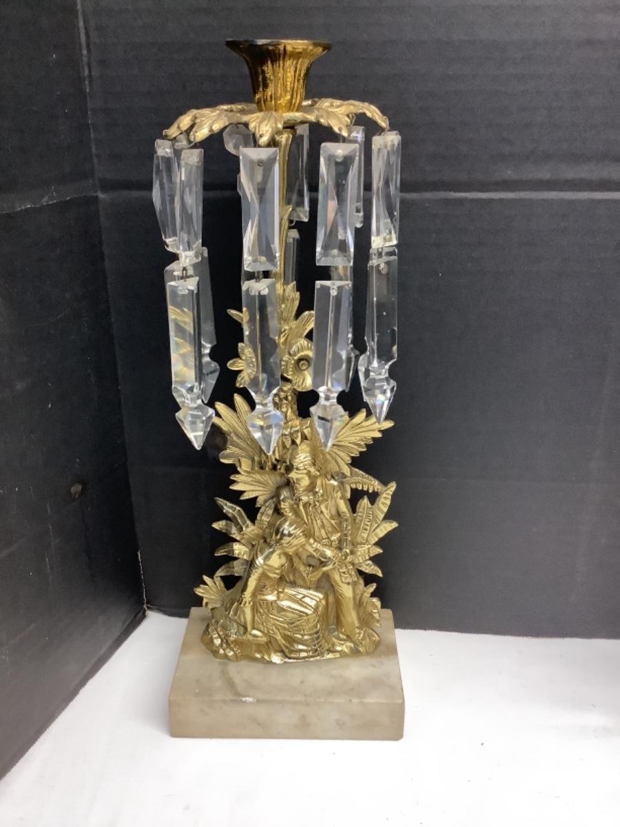 Single Candle Girandole measures 15” tall with a marble base measuring 5-1/2” x 3-1/4”