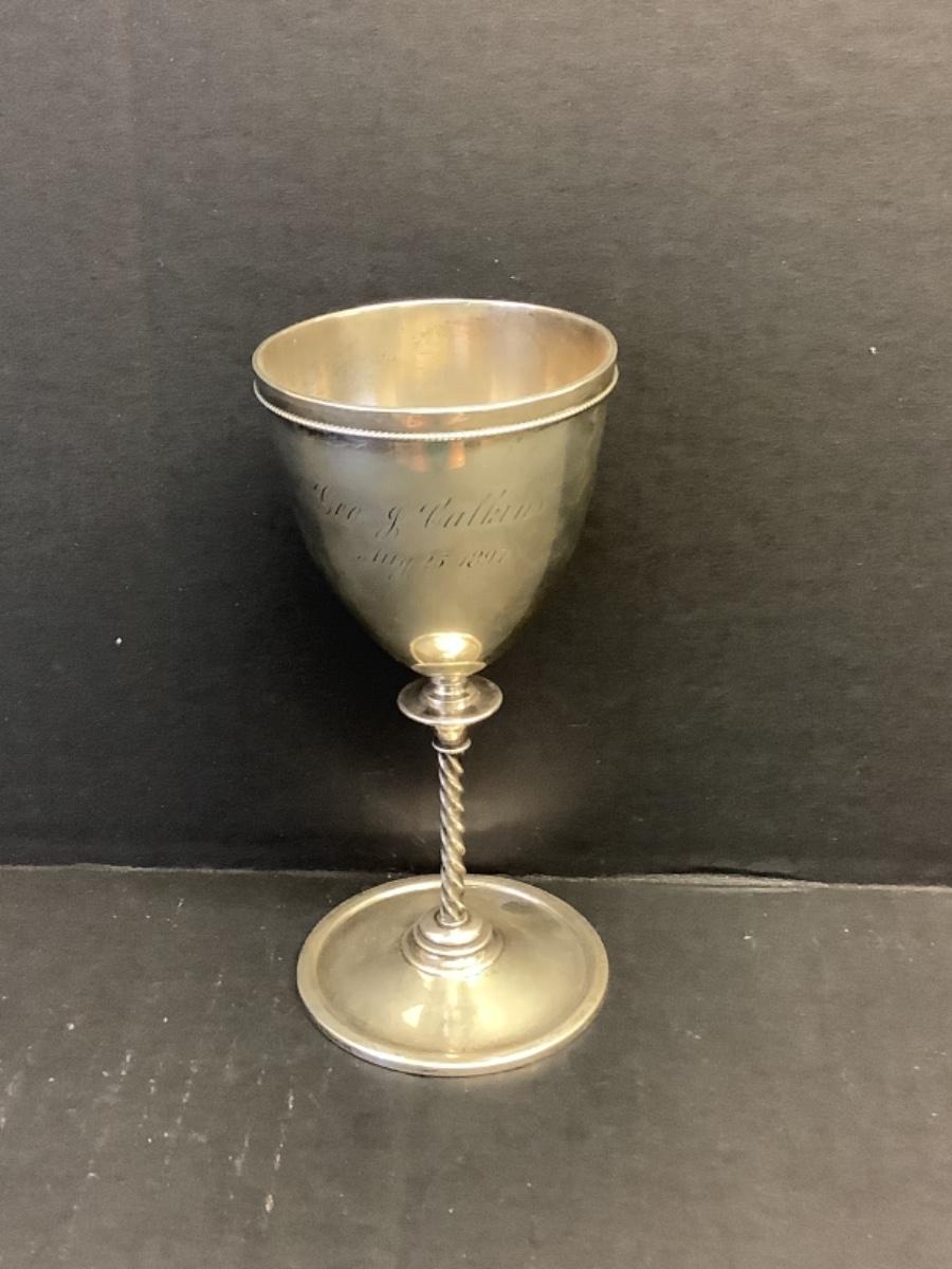 B2177 Antique Vanderslice Co. Engraved Coin Silver Goblet