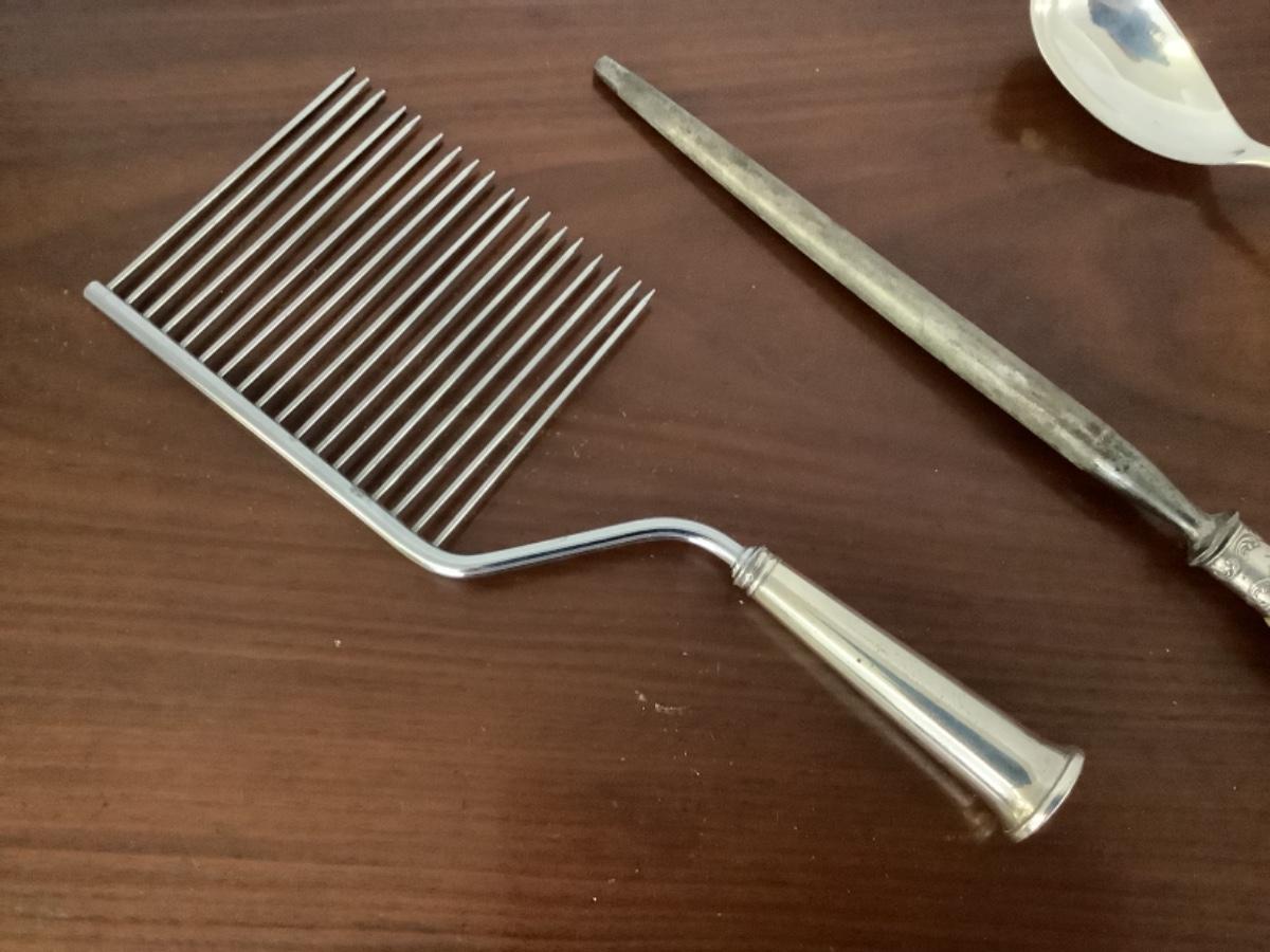 B2255 Ericksen Sterling Silver Stuffing Spoon Horn Handle Sharpener and Cake Breaker