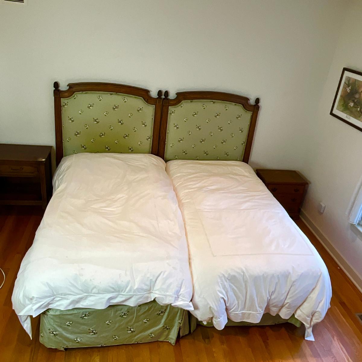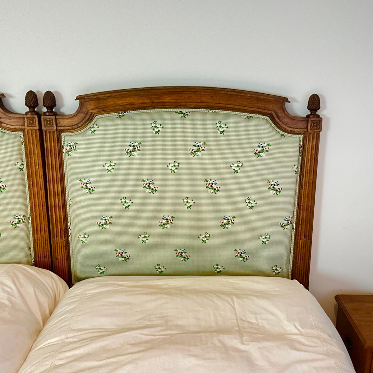B233 Pair Of French Upholstered Twin Beds With Matching Bed Sheets