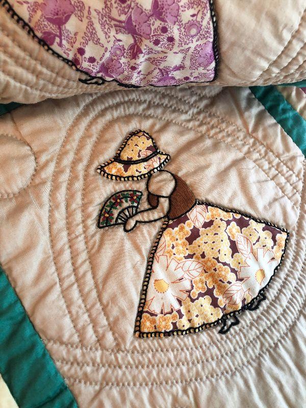 Vintage Quilt with Fanning Girls. Please see all pictures for exact contents of the lot, condition of the items, and if measurements if taken. Thank you for looking and have fun bidding