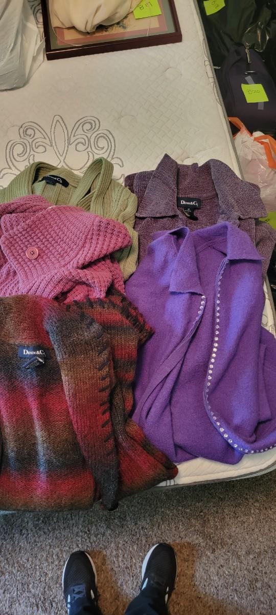 Five Sweaters 1X . Three Denim & Co, one The Quacker Factory and one Liz