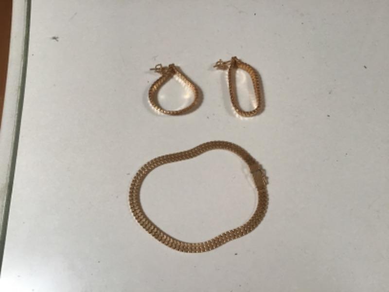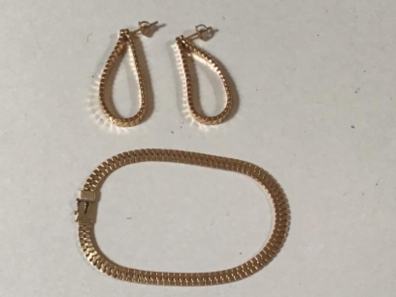 B3-106 14 karat gold bracelet and matching earrings
