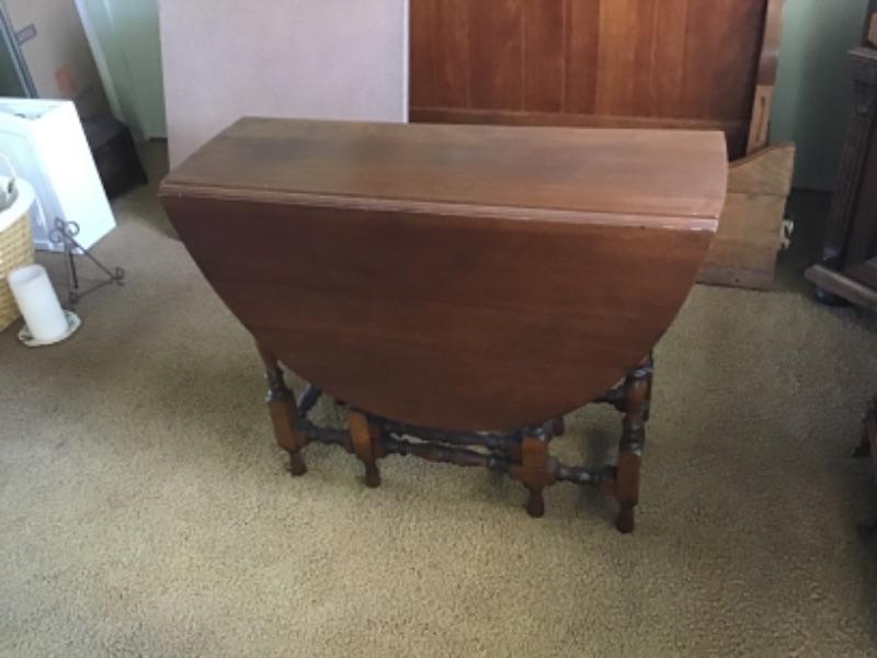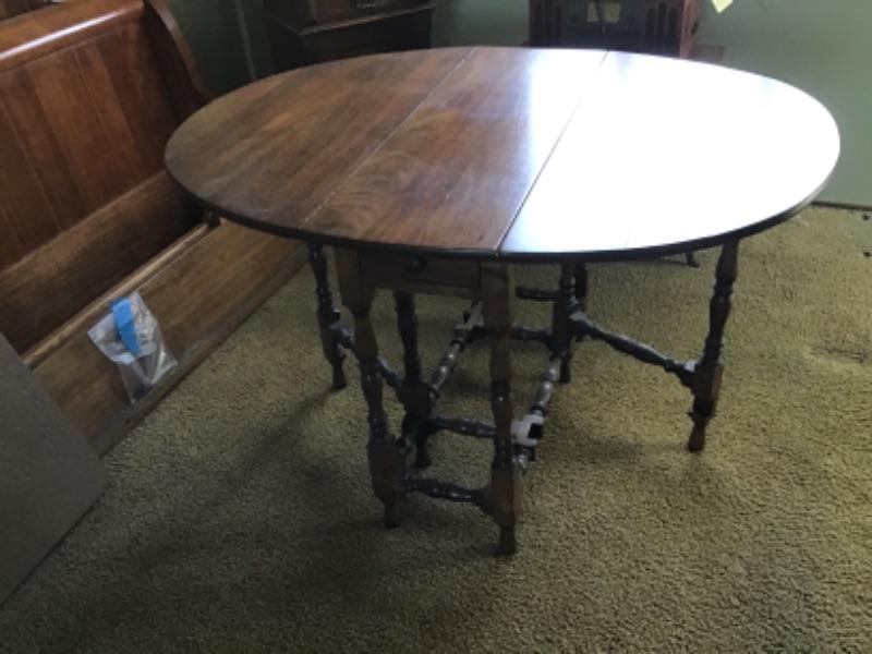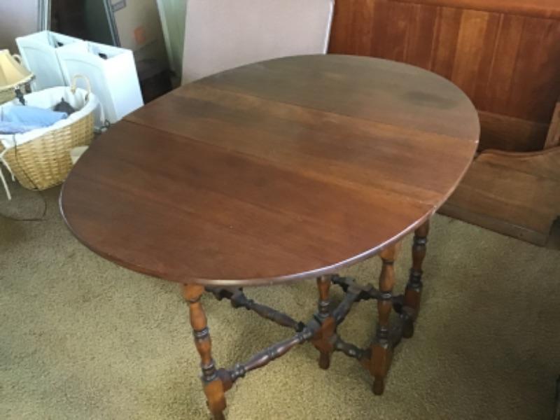 Vintage drop leaf gateleg table measures approximately 48 inches wide by 38 inches deep by 29 inches high