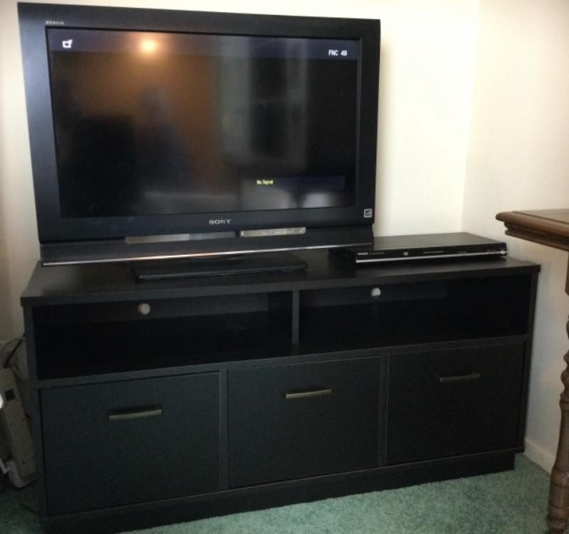 B-325 Sony Bravia 32” TV Toshiba DVD Player Black TV Stand