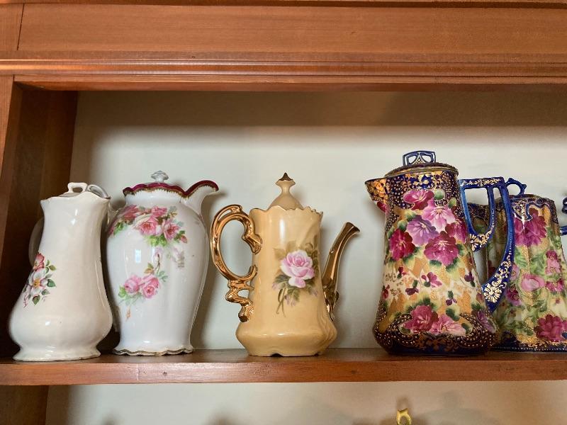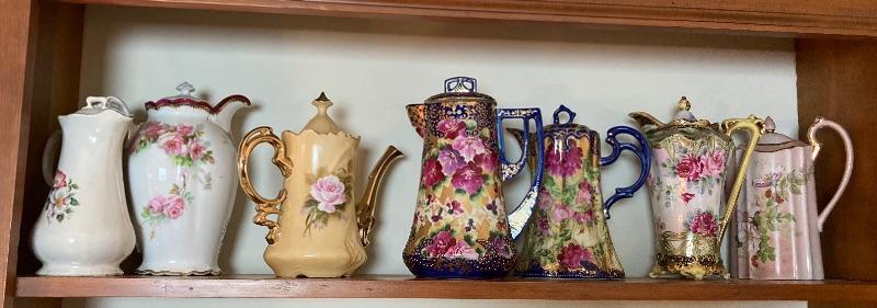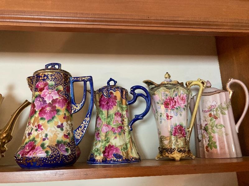 Lot of 7 vintage Chocolate Pots Lefton China, Nippon, R.S. Germany and more