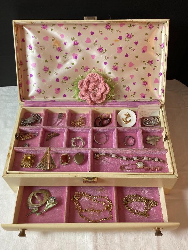 B-374 Vintage Jewelry Box with Costume Jewelry