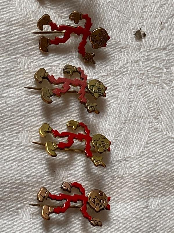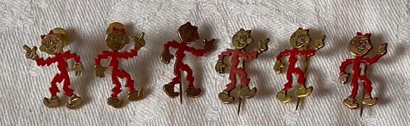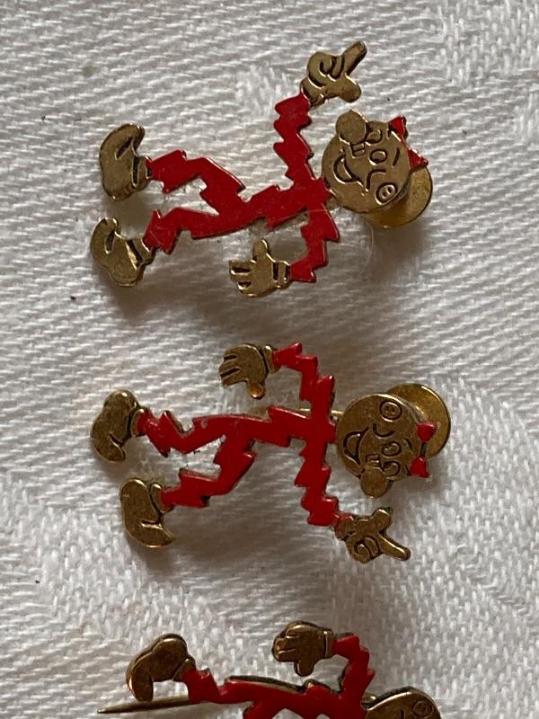 B-377 Pair of Vintage 1950’s Reddy Killowatt Screw Back Earrings and Four Lapel Pins