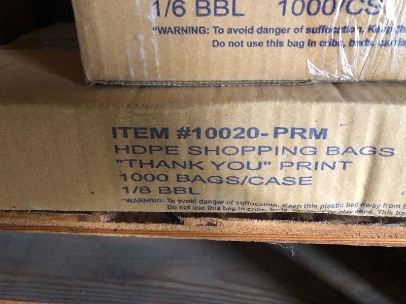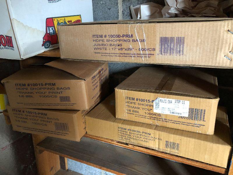 5 unopened boxes of t-shirt bags. Couple of sizes