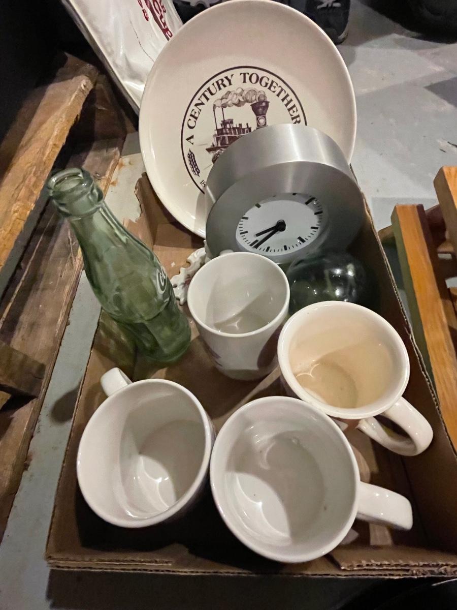 B40 Clark, cups, Coke bottle, miniature picnic bench