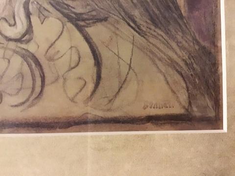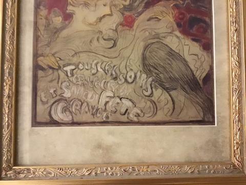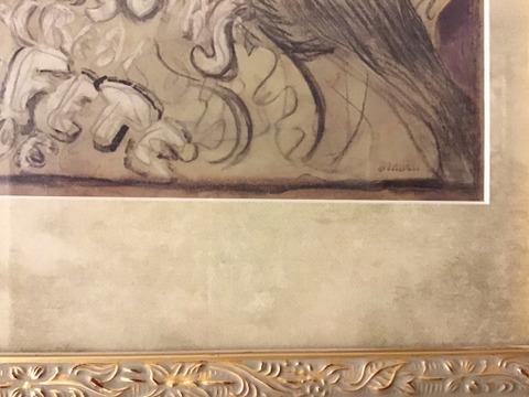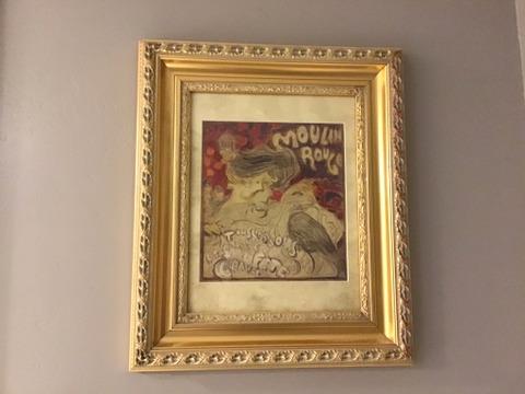 This gold framed Moulin Rouge-themed print is stamped in the lower corner. I