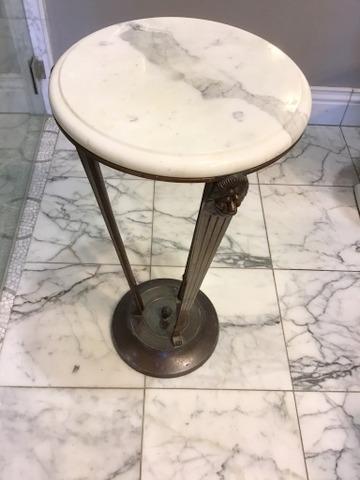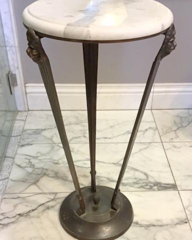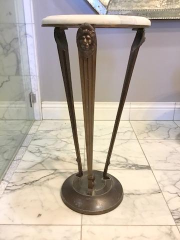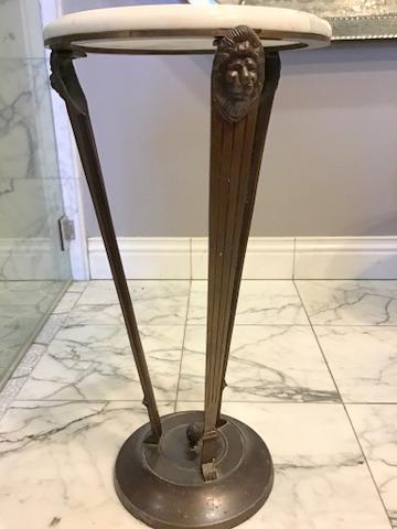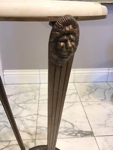 This table stands 2 ft. tall and is in great condition. This features lion's heads at the top of the legs, with feet at the base bottom. This table can enhance your hallways, entryways, or even your dining room,