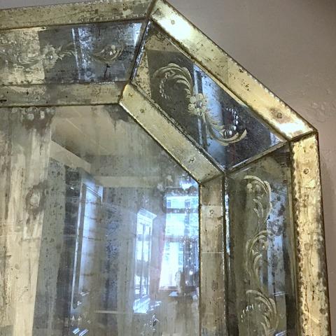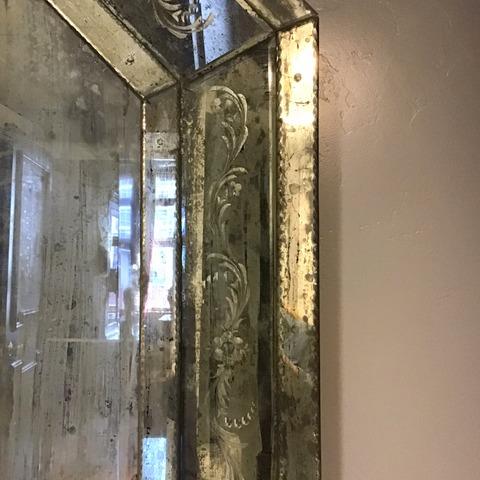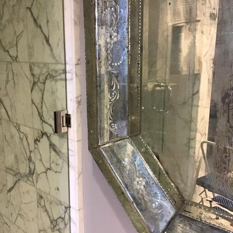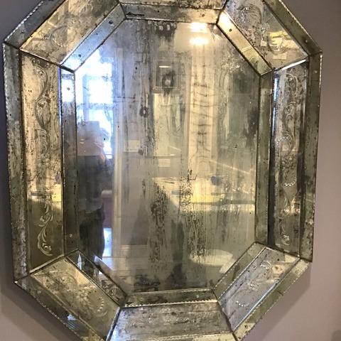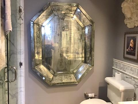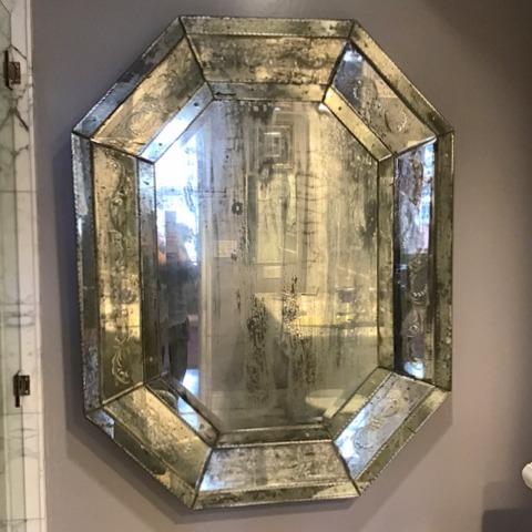 B408 - Fabulous Lg. Octagon Antiqued & Beveled Mirror with floral design 4' 5" x 3' 5"