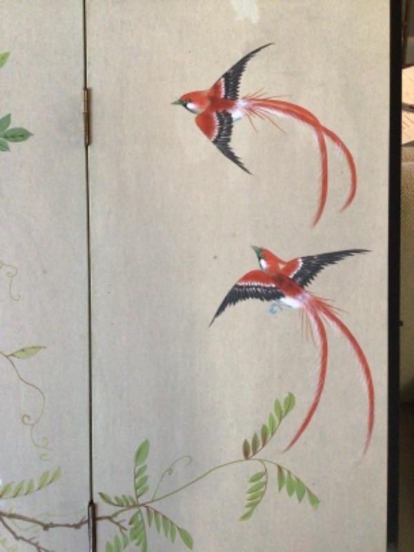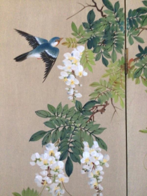 B413: Four Panel Hand painted Japanese Bird Decorative Screen