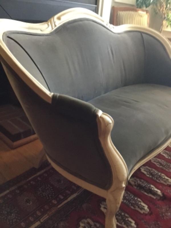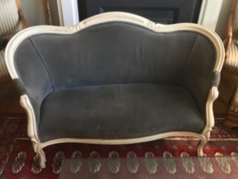 B - 415: Antique White and Gray Velvet Victorian Loveseat