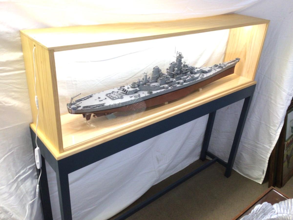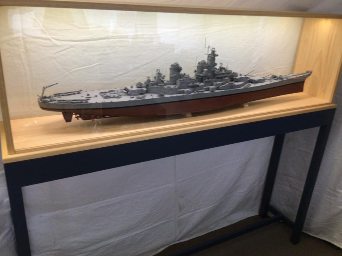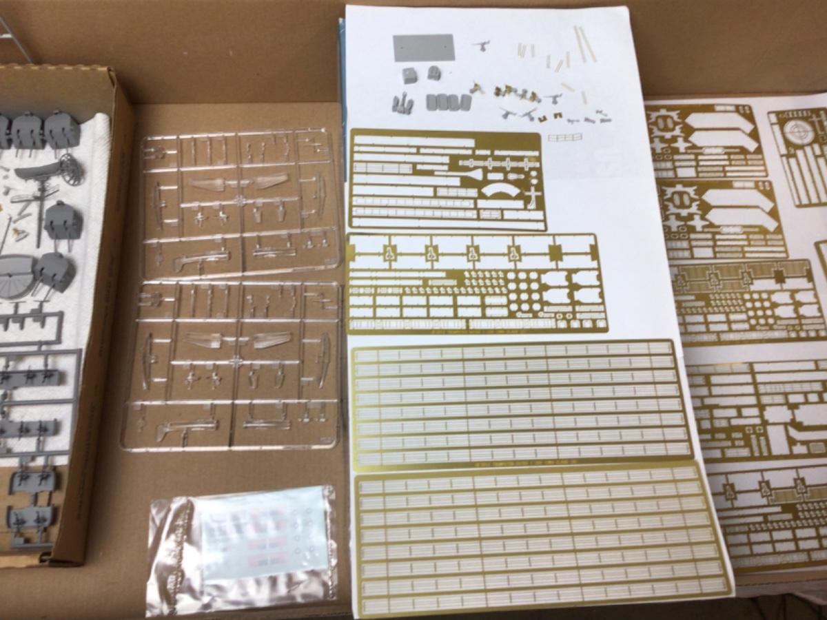 New opened box complete with 1573 pieces. This model has been 95% assembled.. Remaining parts are bagged in original box. Model comes with custom wooden and glass display case with installed LED lighting. Custom display case measures-61-1/4”W x 12-1/2”D x 54-1/4”H