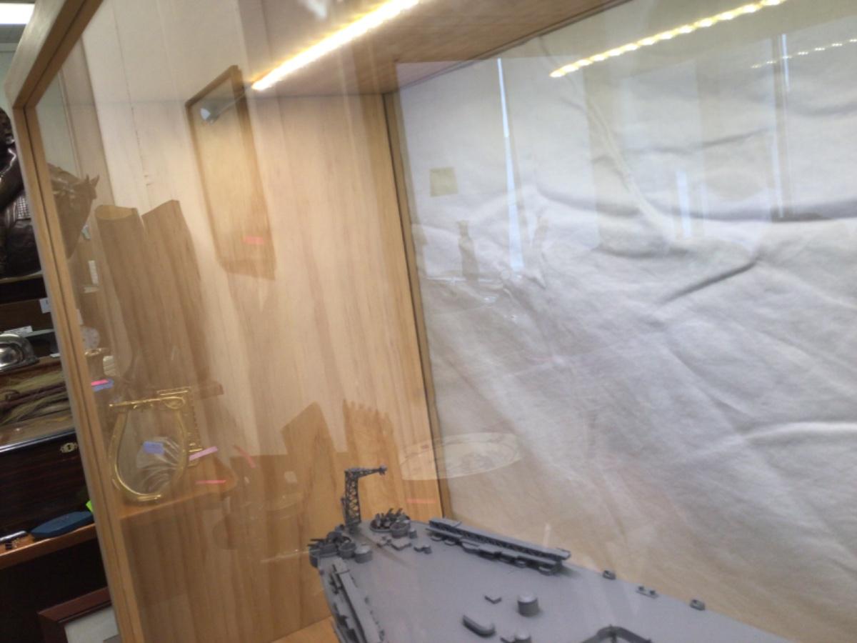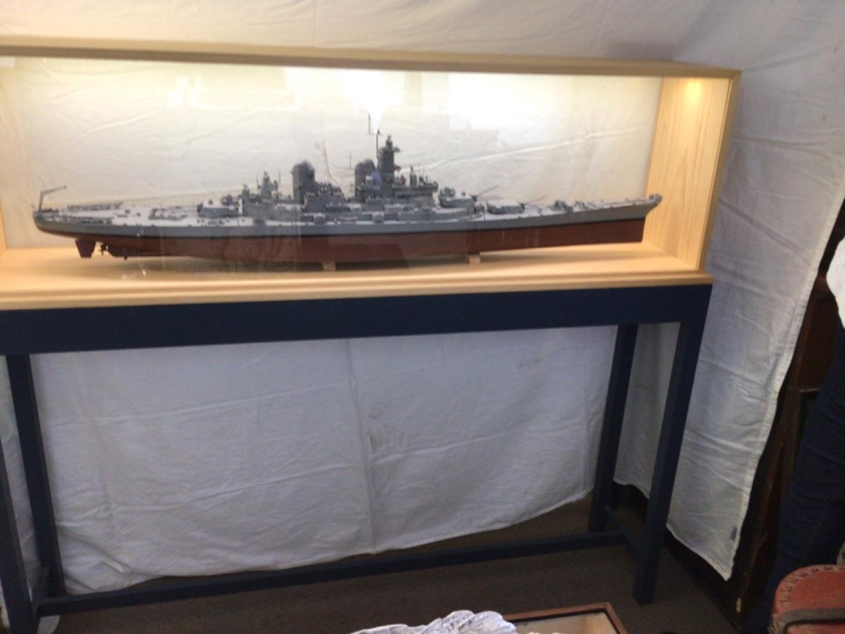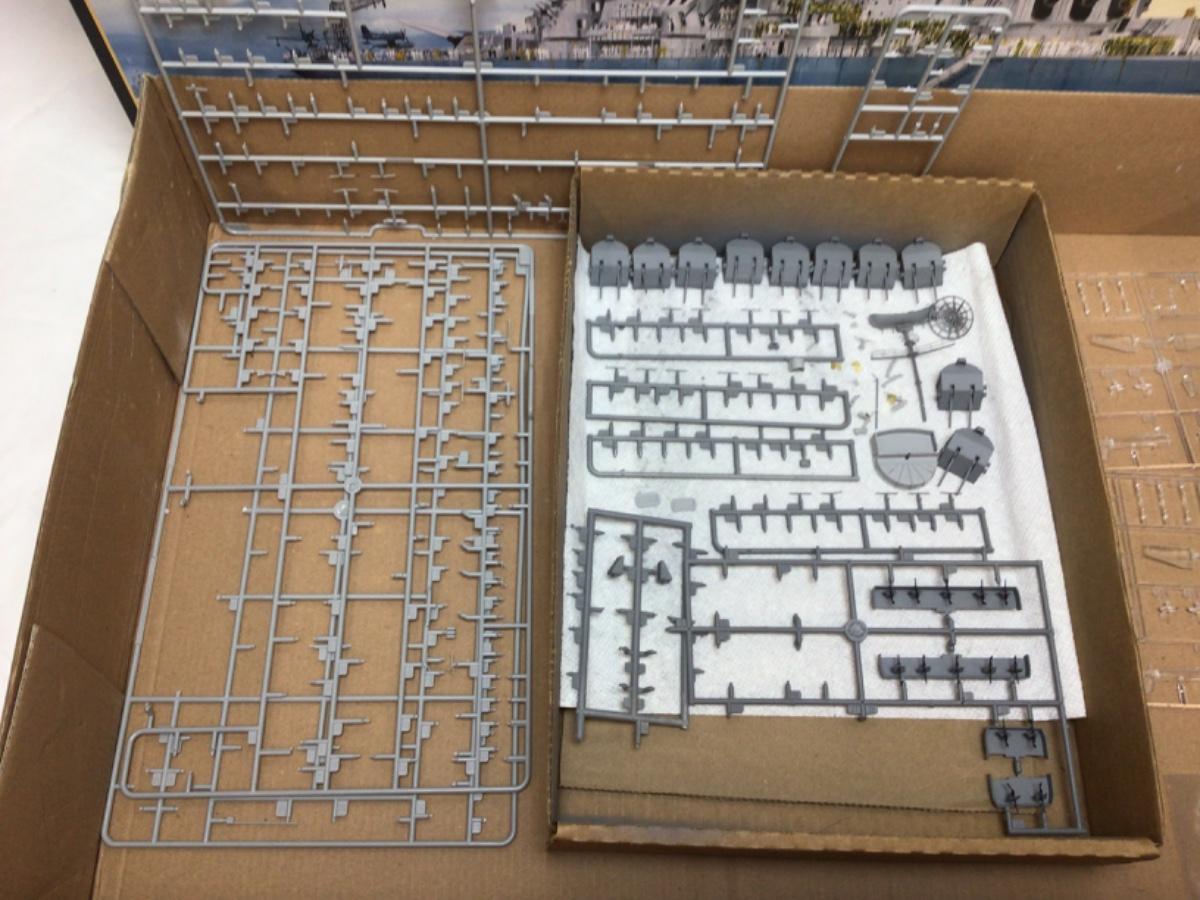 New opened box complete with 1573 pieces. This model has been 95% assembled.. Remaining parts are bagged in original box. Model comes with custom wooden and glass display case with installed LED lighting. Custom display case measures-61-1/4”W x 12-1/2”D x 54-1/4”H