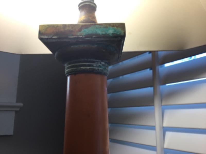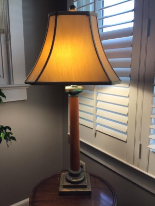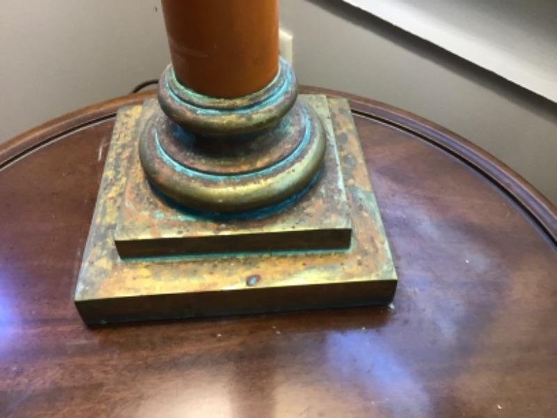 Antique Wood and Brass Lamp with two pull chains (with patina)