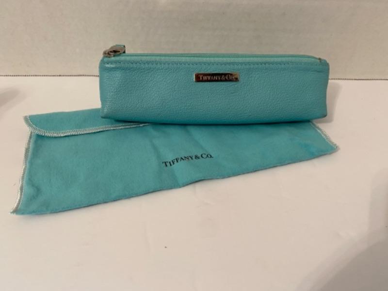 B - 434: Tiffany & Co. Leather Makeup Blue zipper case