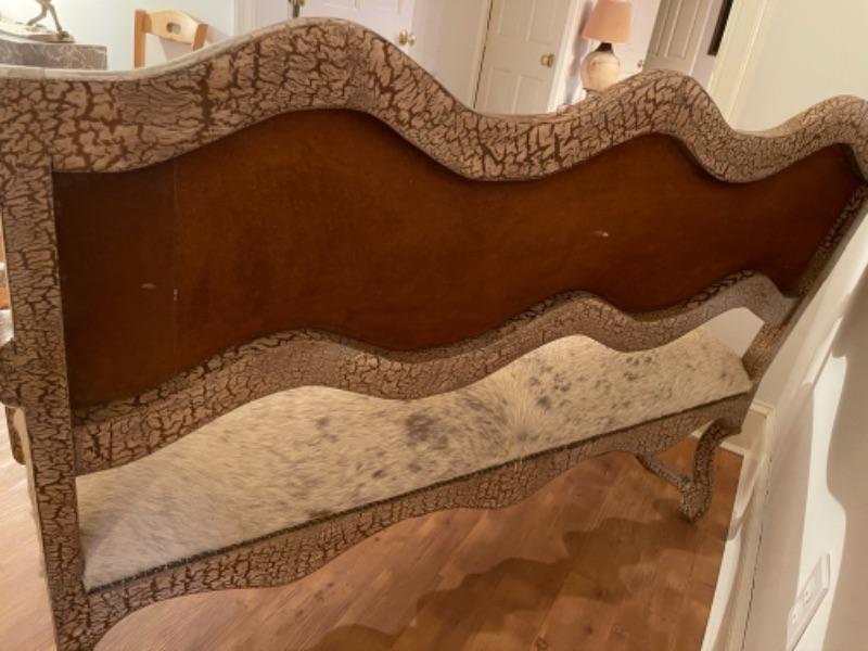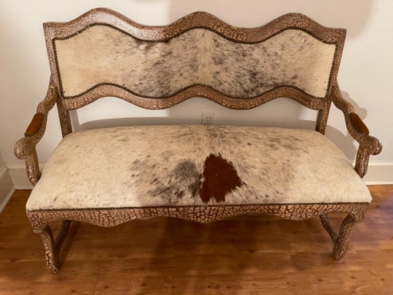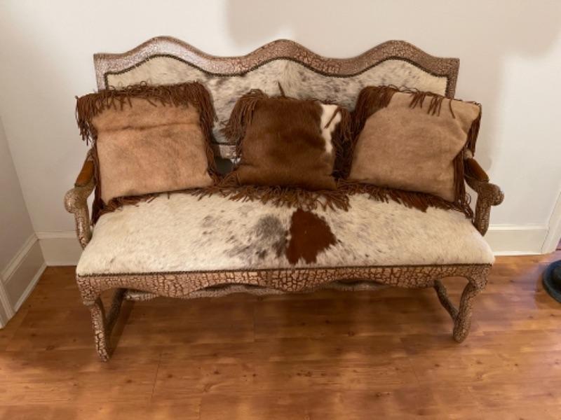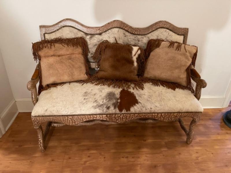B454 Beautiful Cowhide Bench with Cowhide Accent Pillows