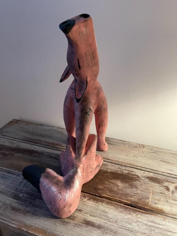 Signed Dog / Coyote Wood Carved Figure by Duane Alvarez