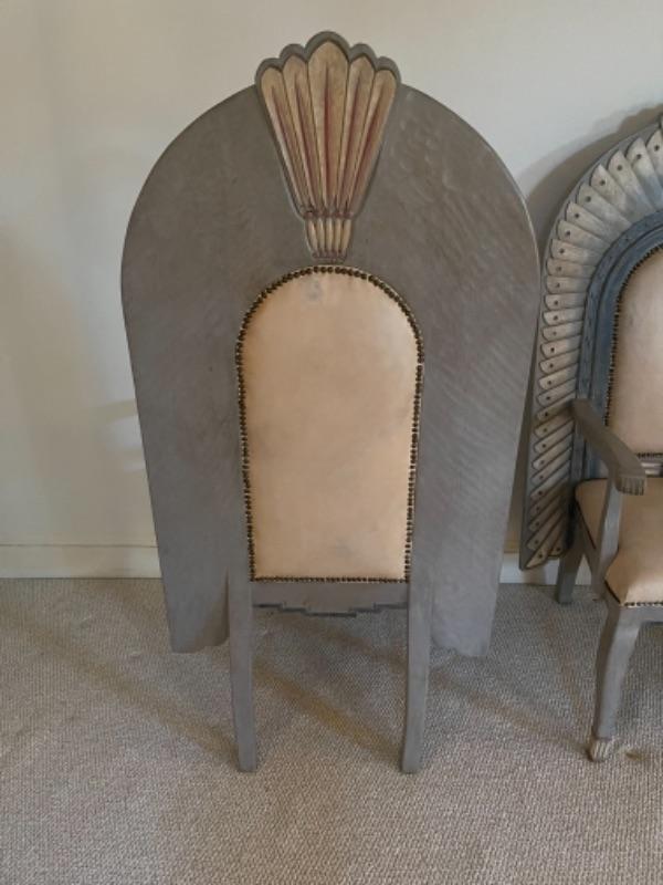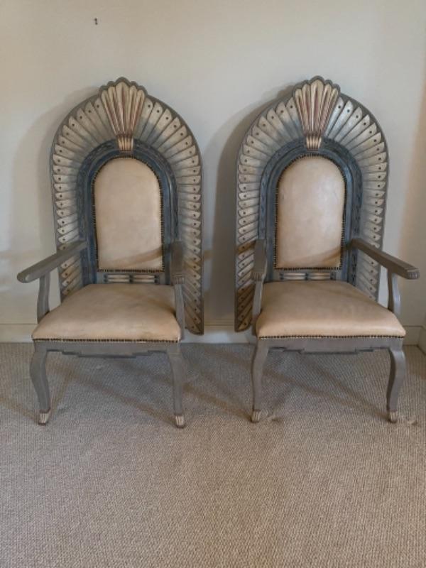 These beautiful chairs are Handpainted with leather seats and studded accents