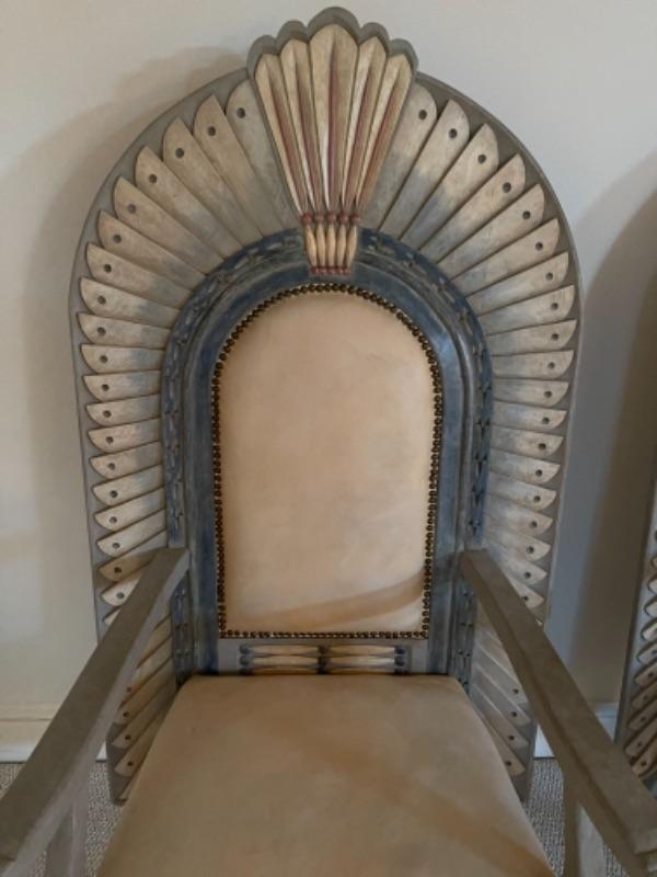 B469 Pair of Wooden Handpainted Native American Style Chief Arm Chairs