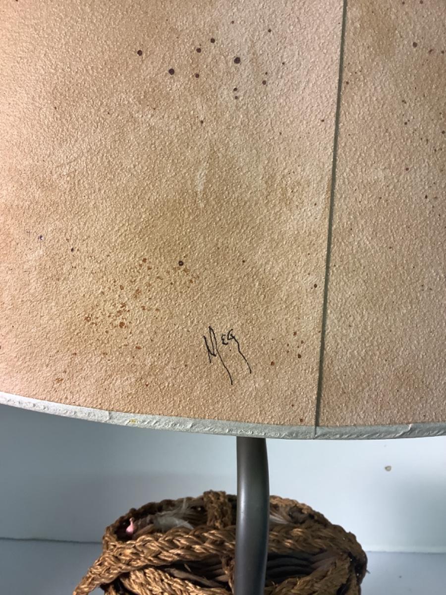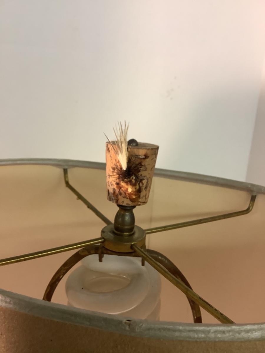 B475 Vintage Fishing Creel Lamp with Handpainted Shade