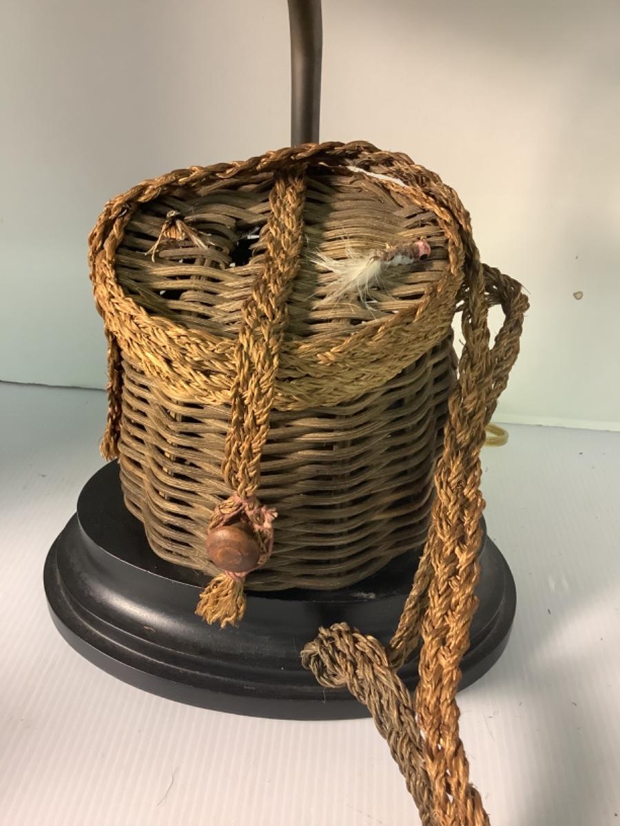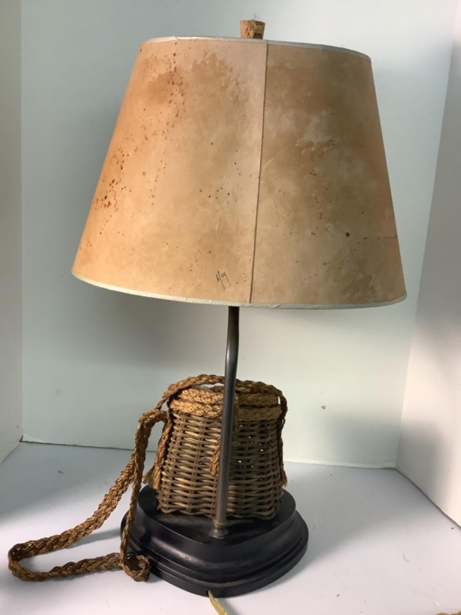 B475 Vintage  Fishing Creel Lamp with Handpainted Shade
