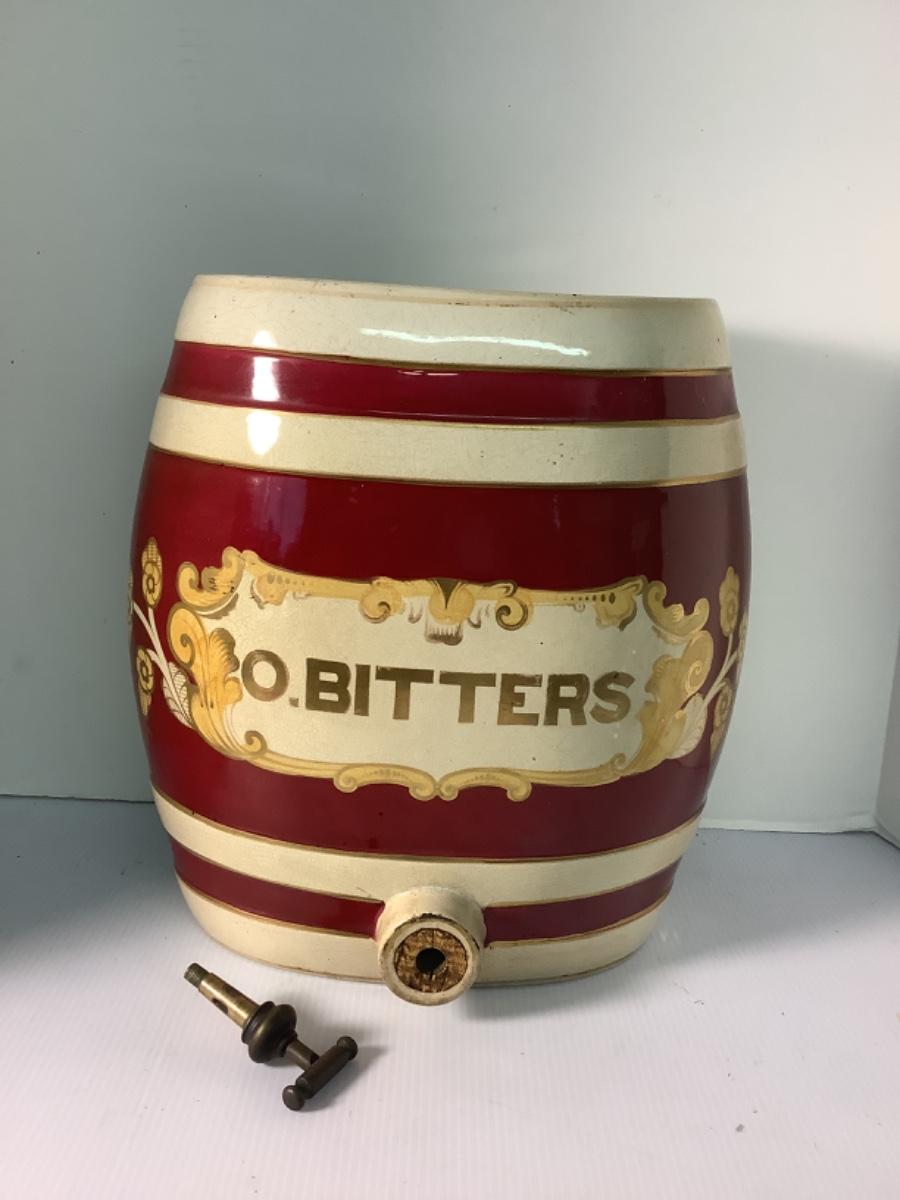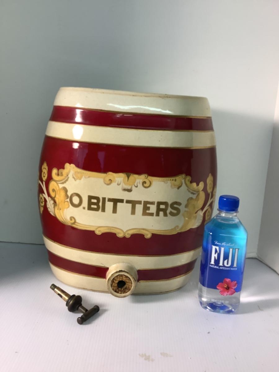 B478 Antique LG. Ceramic Spirit Barrel Liquor Decanter O.Bitters